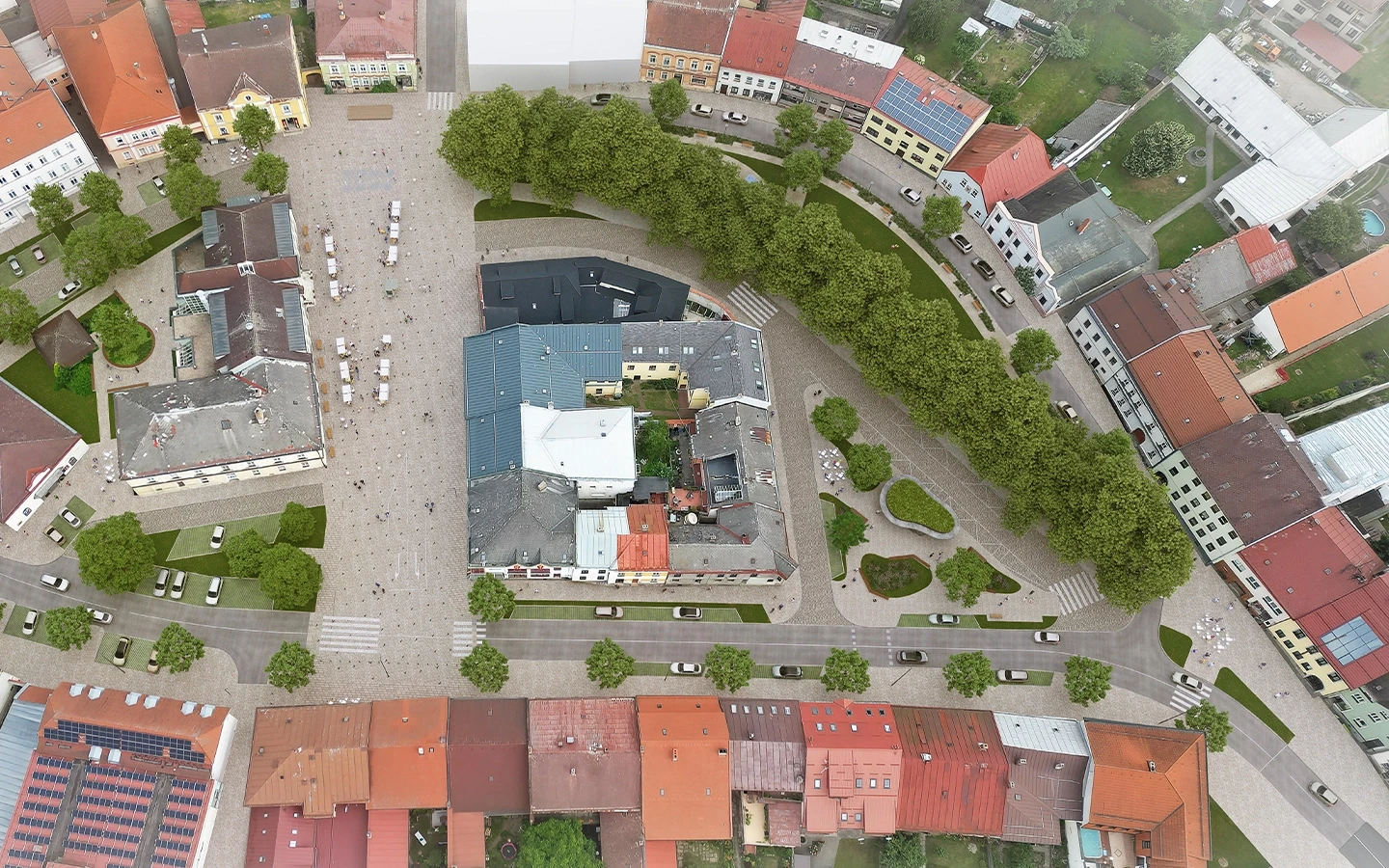 Hlavní plocha náměstí před radnicí bude reprezentativním prostorem, kde se budou odehrávat trhy, poutě nebo koncerty. Nebude to silnice ani parkoviště. Parkovací místa budou přesunuta jinam, ačkoliv zůstanou v krátké docházkové vzdálenosti.