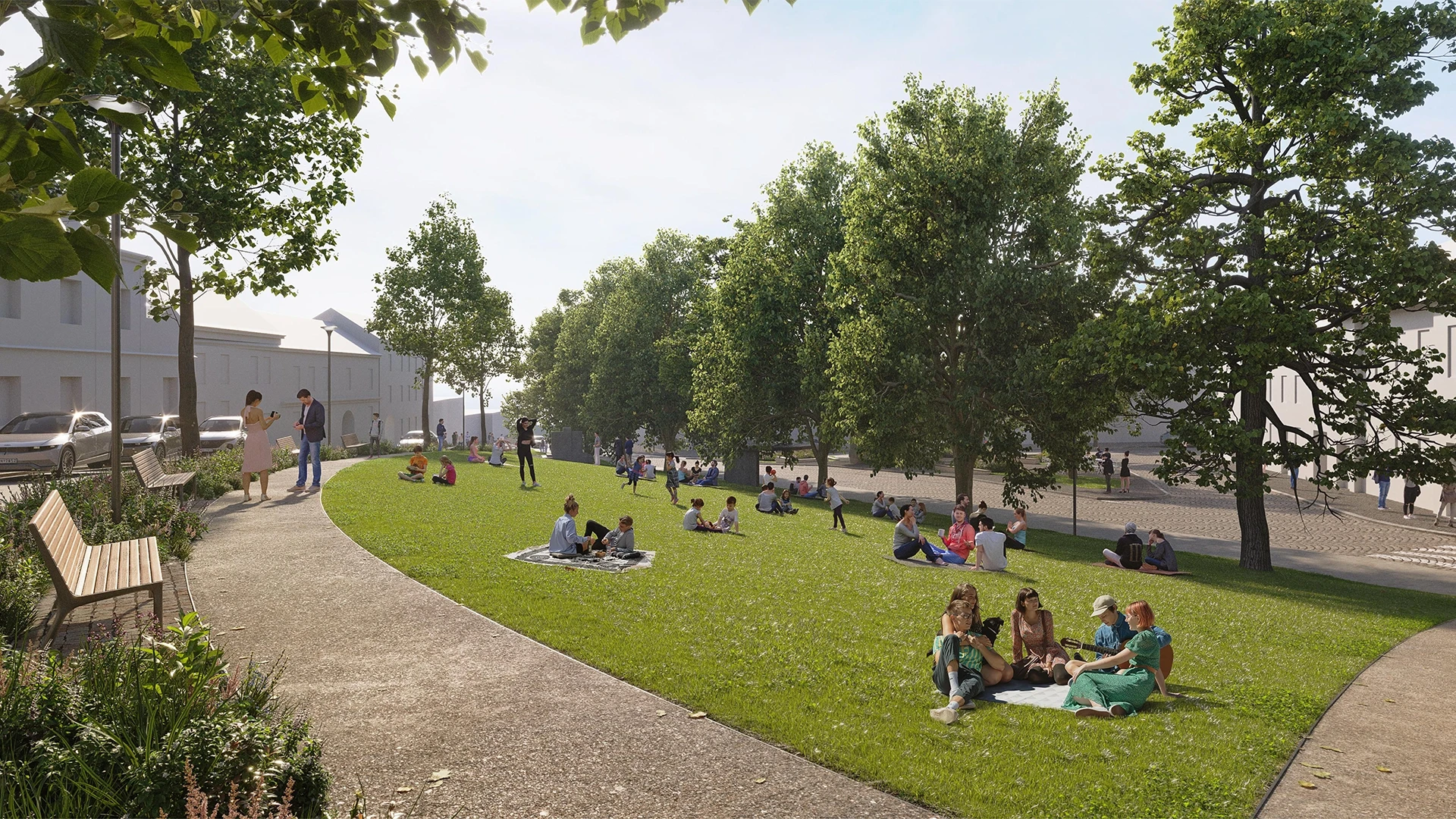 Návrh vytváří kvalitní a velkorysý park od Husovy ulice až po náměstí. Veškeré zbytečné bariéry budou odstraněny. Park bude doplněn o nové lavičky, osvětlení a další potřebné vybavení.