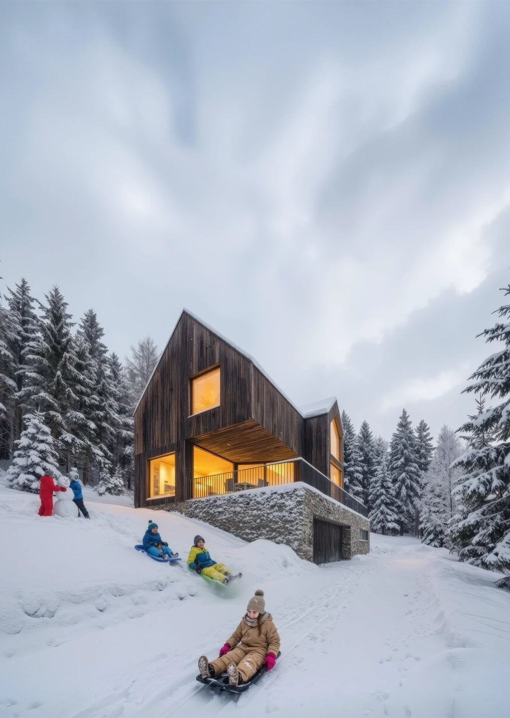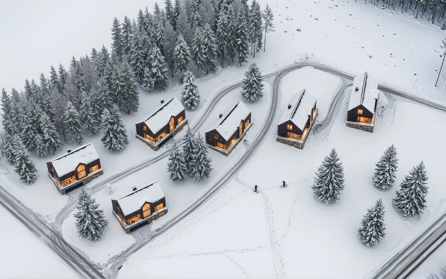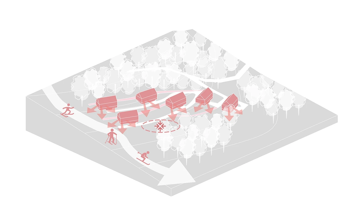 Každý dům je v území precizně usazen tak, aby majitelům zajistil soukromí a otevřel jim ty nejkrásnější panoramatické výhledy do okolí, zároveň je možné se pár kroky dostat přímo na lyžařskou sjezdovku.